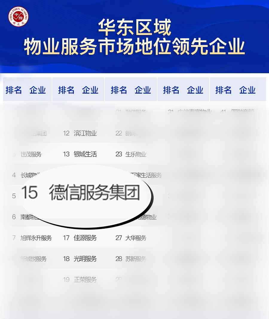 德信服务蝉联华东区域市场地位领先物企!位列第15位