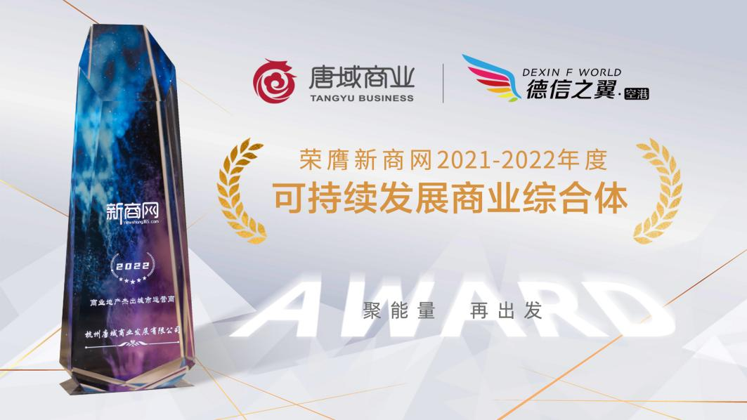 近日,由两大商业巨头——联商网主办的“2022年度华东商业年会”及新商网主办的“2022年度商业地产峰会”分别落下帷幕。唐域商业凭借过硬实力,披荆斩棘,从众多商业运营商中脱颖而出,分获联商网2022年度杰出商业运营商、新商网2022年度商业地产杰出城市运营商,旗下空港德信之翼项目斩获新商网2021-2022年度可持续发展商业综合体,共计三项重磅大奖!