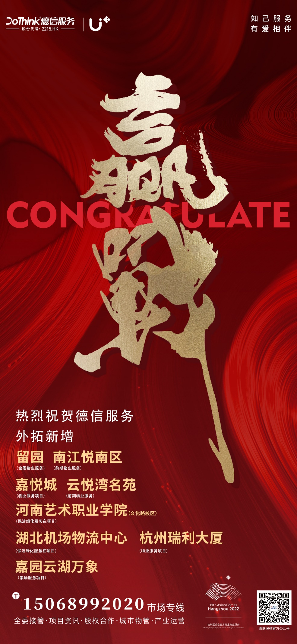 云程发轫,千霄凌云。癸卯兔年春节假期刚刚结束,德信服务新年市场外拓的好成绩就纷至沓来。近日,德信服务相继中标武汉天河机场物流中心、杭州瑞利大厦、河南职业技术学院文化路校区等多个非住类别项目,以及留园、南江悦南区、嘉悦城、云悦湾名苑等多个住宅项目。