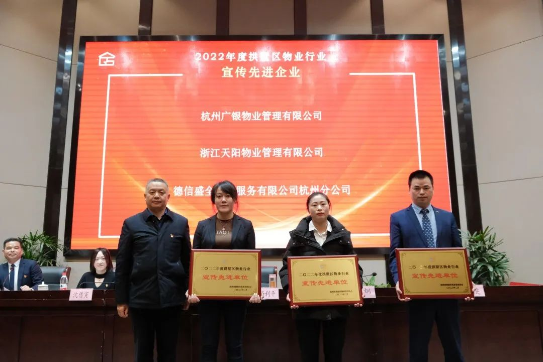 2月24日下午,杭州市拱墅区物业管理协会召开第一届会员大会第二次会议暨2022年物业总结表彰大会。德信服务凭借优质的服务实力荣获“2022年度拱墅区物业行业宣传先进企业”、“2022年度拱墅区物业管理协会优秀会员单位”。